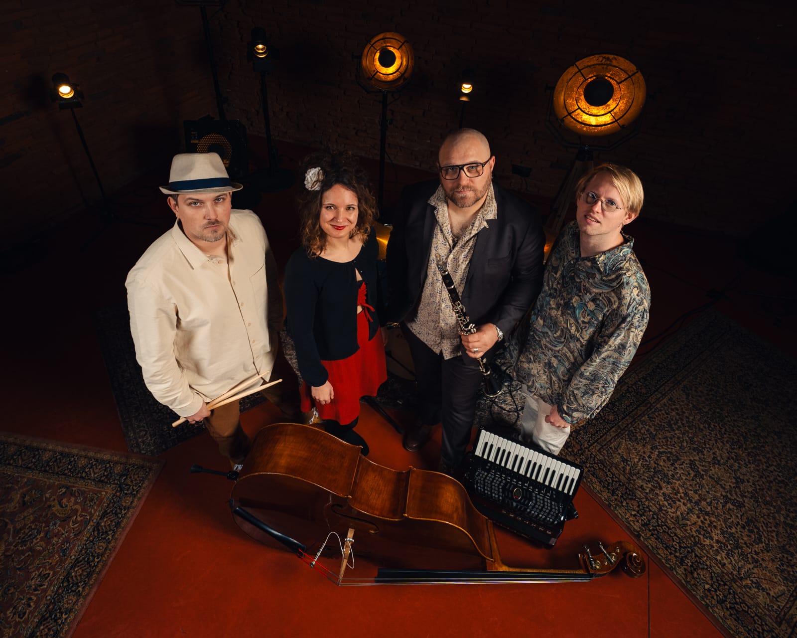 Chansons populaires, latin jazz, musiques d’ici et d’ailleurs mais surtout musiques de fête et de danse, percussions, contrebasse, accordéon et clarinette s’associent à la découverte de mélodies envoûtantes et endiablées.